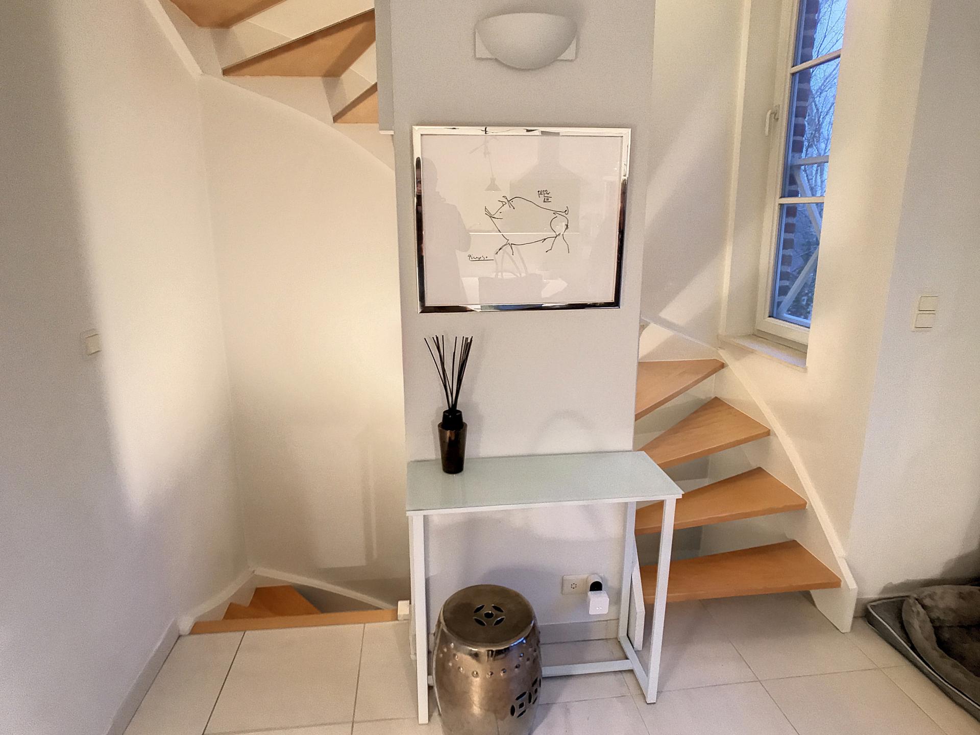 - BUANDERIE : ± 5 m² avec chaudière au gaz Viessmann, boiler ± 100 L + empl. MàL et séchoir/Carrelage