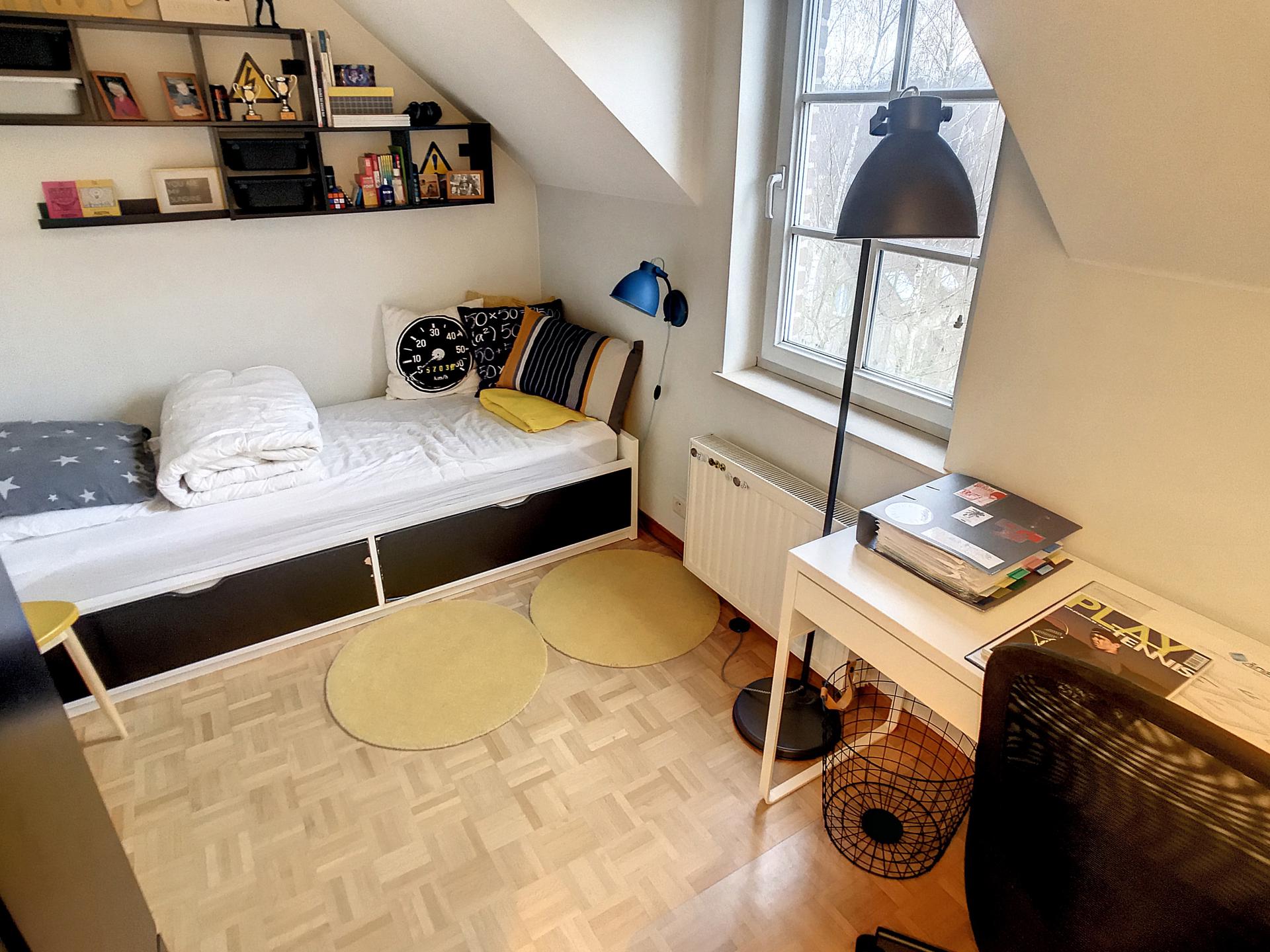 - CHAMBRE : ± 8,5 m²/Parquet